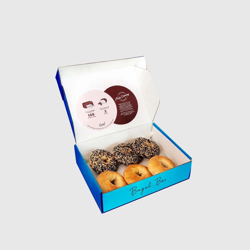 Get the perfect sizes and shapes for your bagel box, designed specifically for packaging and safe delivery. Whether you need boxes for a few bagels or larger quantities, custom bagel boxes come in various sizes to meet your needs. These boxes are crafted with durable materials to protect your bagels during deliveries, keeping them fresh and intact.