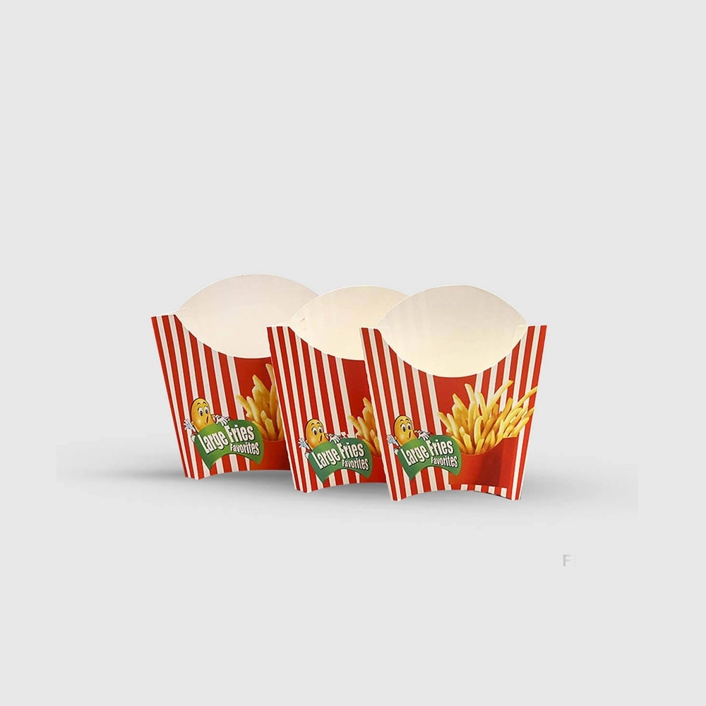 These boxes with French fries accompany inserts and a range of exemplary styles. The most widely recognized is the straight tuck end. Alongside this, we also offer paper food trays that are solid and sturdy and have immense space to accommodate fries.